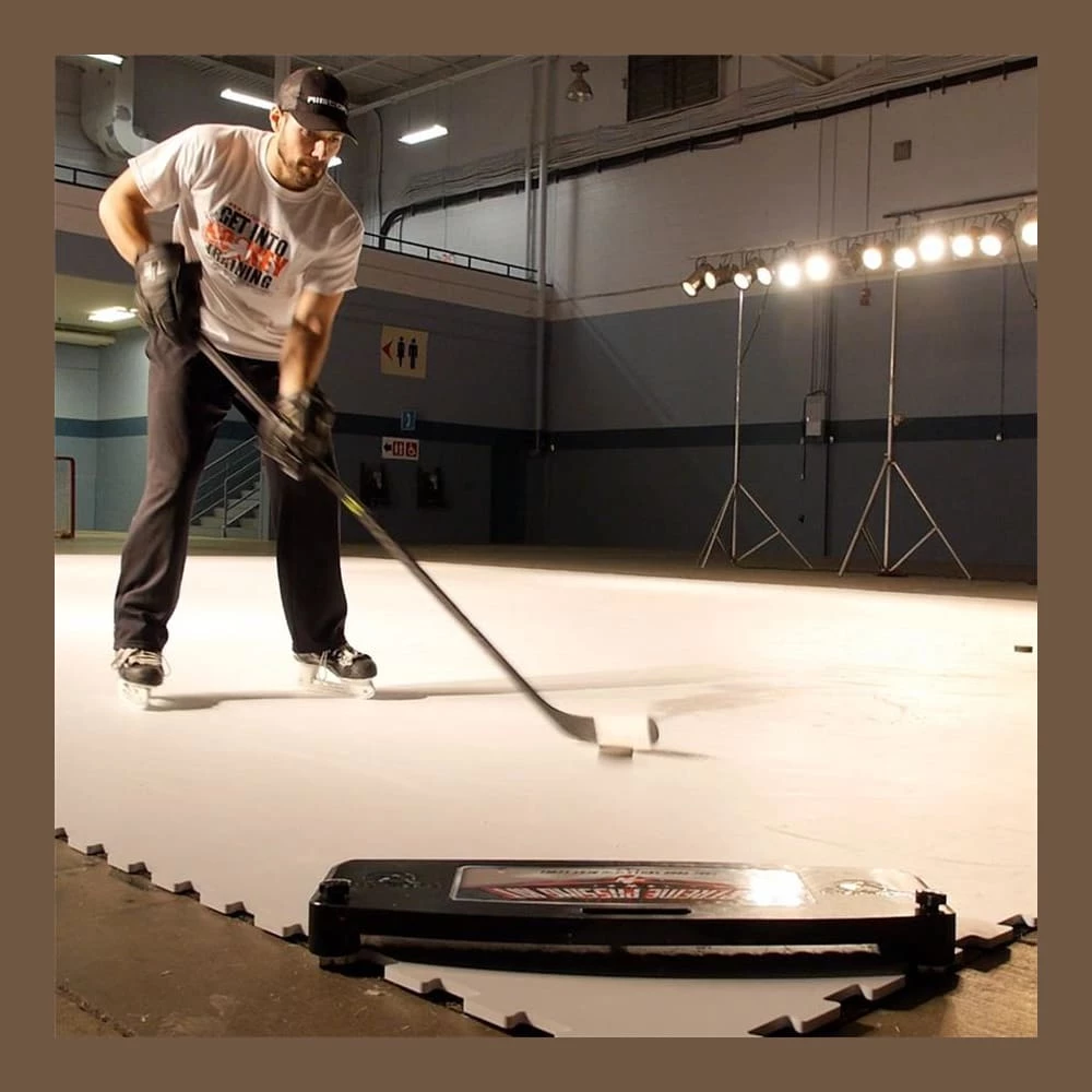 - Off-ice use only – Easy to install on any shooting pad, dryland tiles or synthetic ice surface.