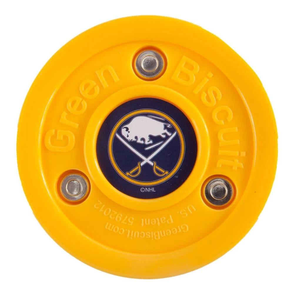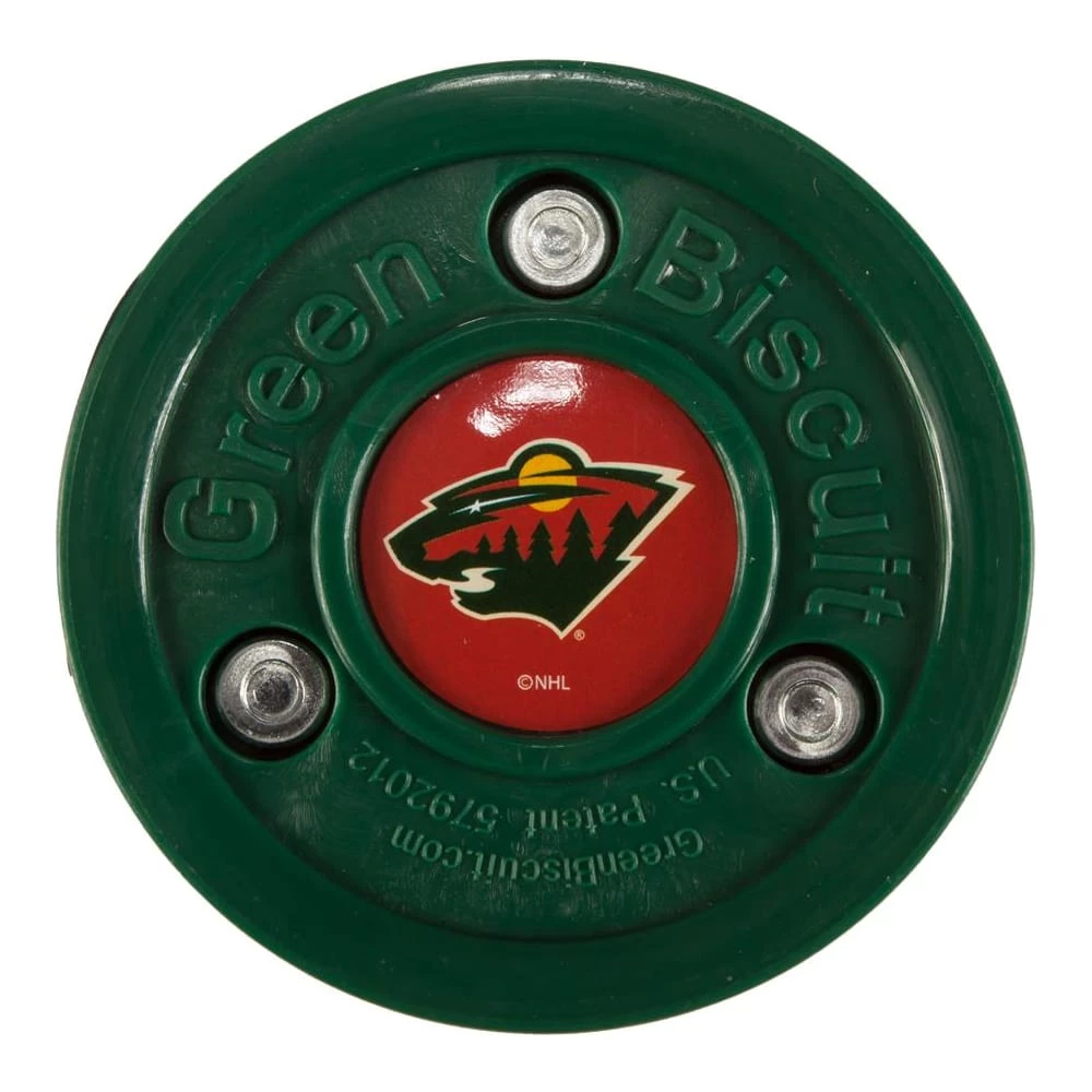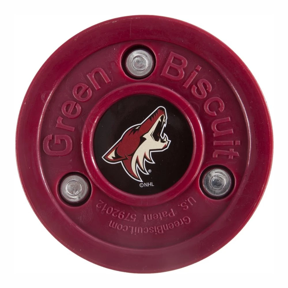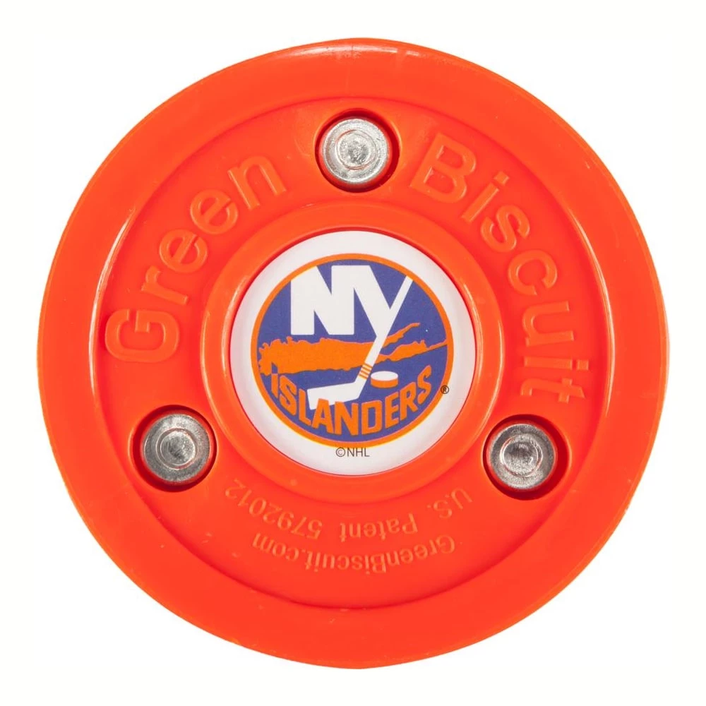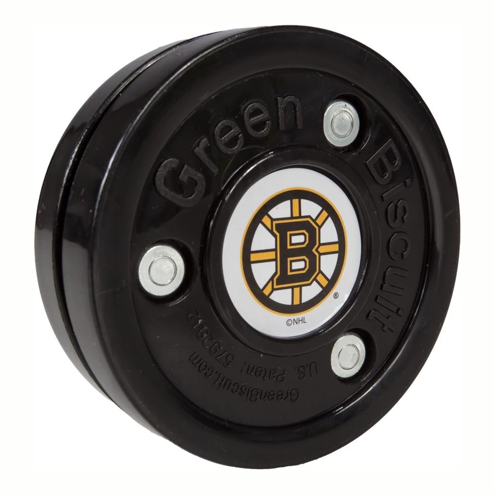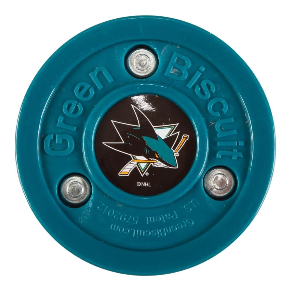 The NHL Team Green Biscuit Training Puck is an off-ice training hockey puck that will help you and your team develop passing and stick-handling skills that will blow your competition away. The Biscuit weighs about an ounce less than a hockey puck but with the added friction from the concrete or asphalt it acts just like the real thing on ice. The Green Biscuit is not made for shooting, but for passing and stickhandling. Order your favorite team today!