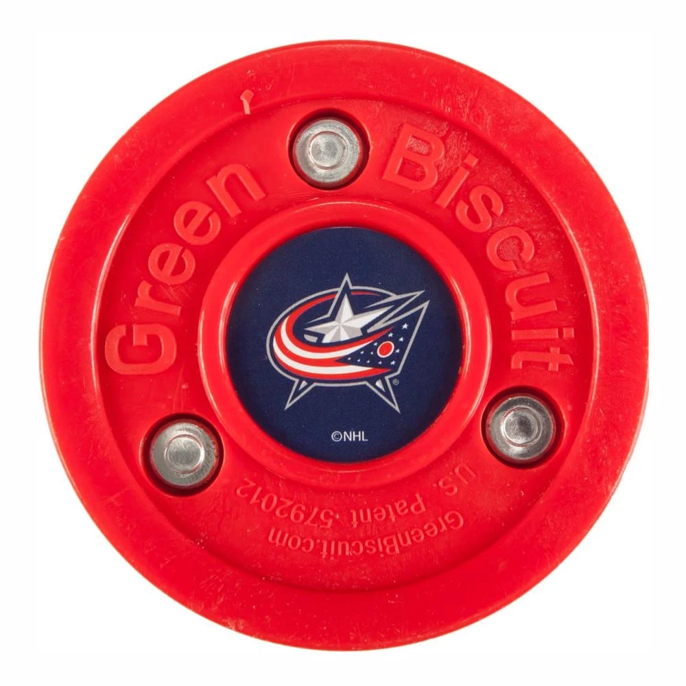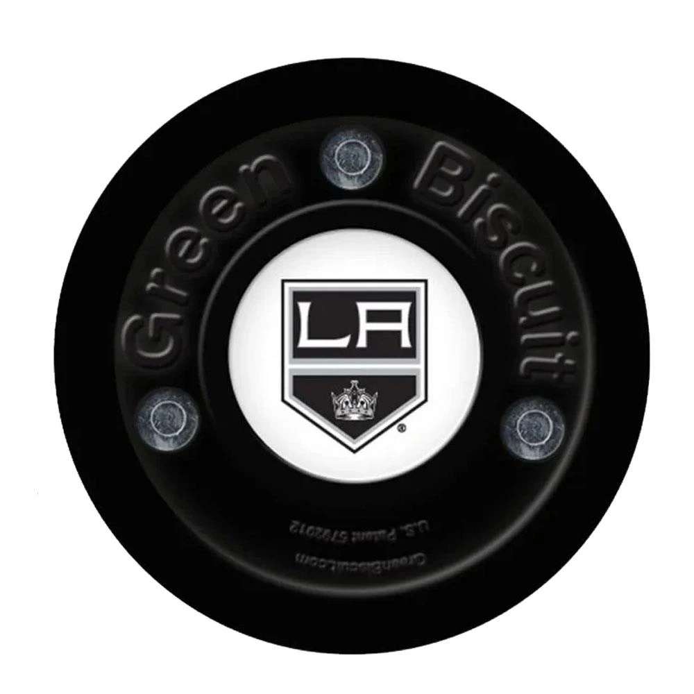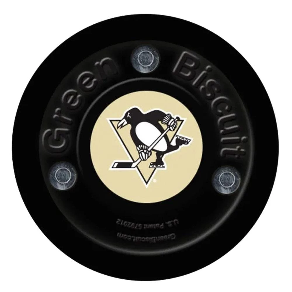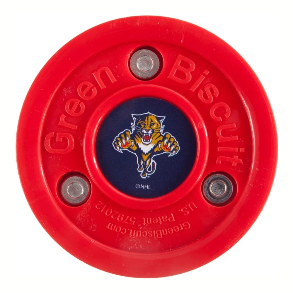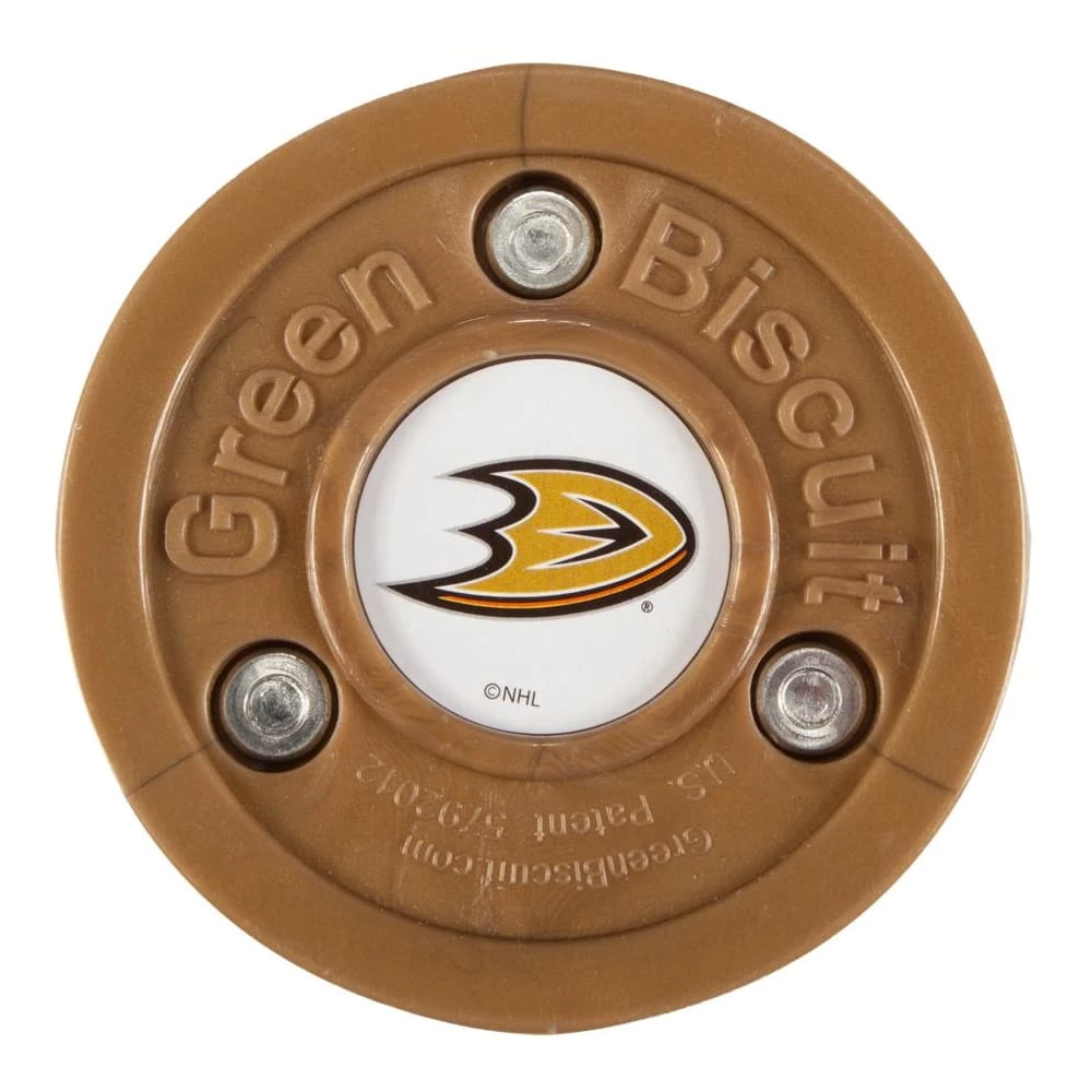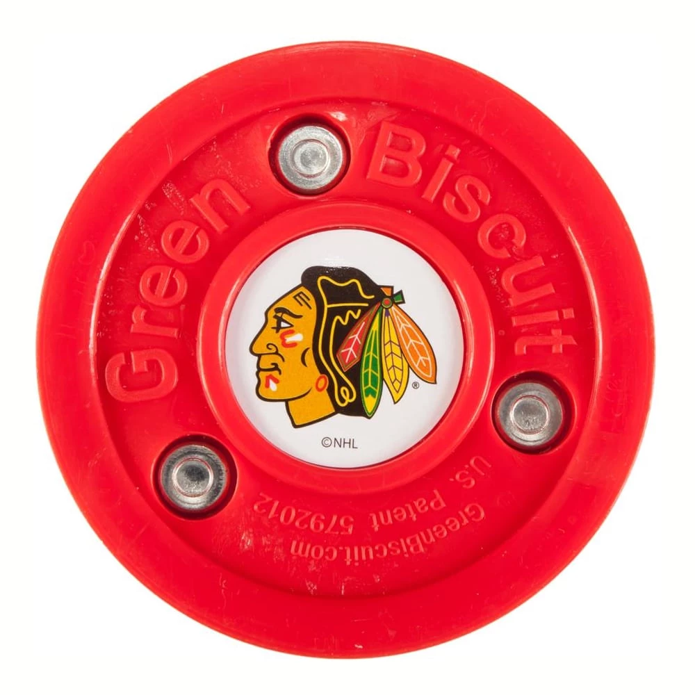 The NHL Team Green Biscuit Training Puck is an off-ice training hockey puck that will help you and your team develop passing and stick-handling skills that will blow your competition away. The Biscuit weighs about an ounce less than a hockey puck but with the added friction from the concrete or asphalt it acts just like the real thing on ice. The Green Biscuit is not made for shooting, but for passing and stickhandling. Order your favorite team today!