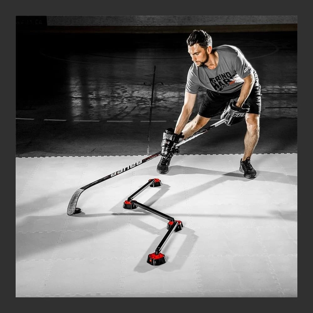 This is HockeyShot’s most versatile stickhandling trainer yet! Find out why hockey players and coaches of all levels are raving about HockeyShot’s Speed Deke Trainer – Off Ice. The freedom to create more custom, situational drills that will give you a leg up on the competition. Learn everything from basic moves to fun dangles. Adjust the height (patent pending) to work on different techniques. Durable light weight high impact Aluminum materials allow you to set it up any way you want thanks to its innovative rotating pivot points.