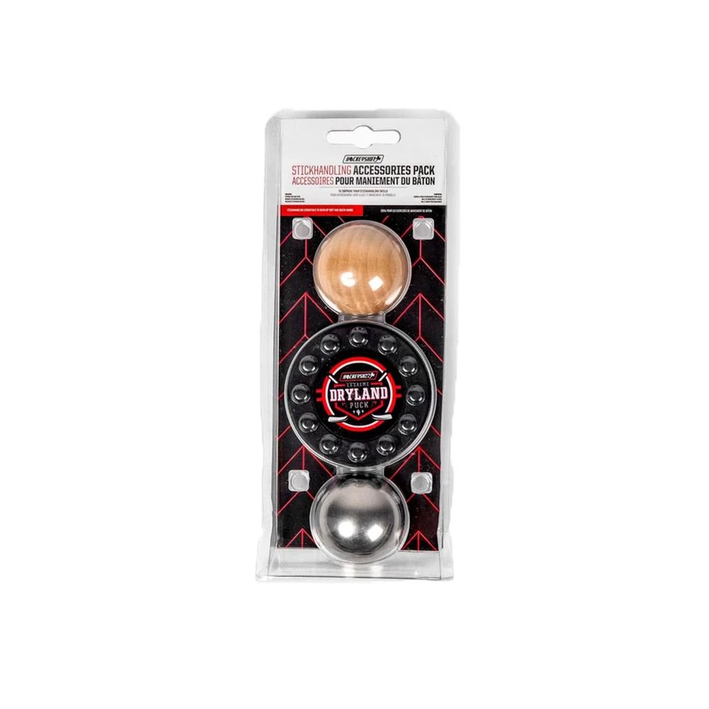 Develop your stickhandling techniques and puck control with this trio of training tools. The Stickhandling Accessories Pack contains the Swedish Stickhandling Ball, Extreme Dryland Puck and Heavy Stickhandling ball. The diversity of weights in this pack allows you to work on different drills while ensuring you develop soft and quick hands that is crucial for every hockey player.